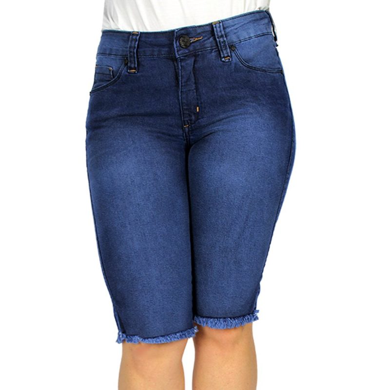 BERMUDA JEANS FEMININA MODELO CICLISTA COM CINTURA MÉDIA ALTA