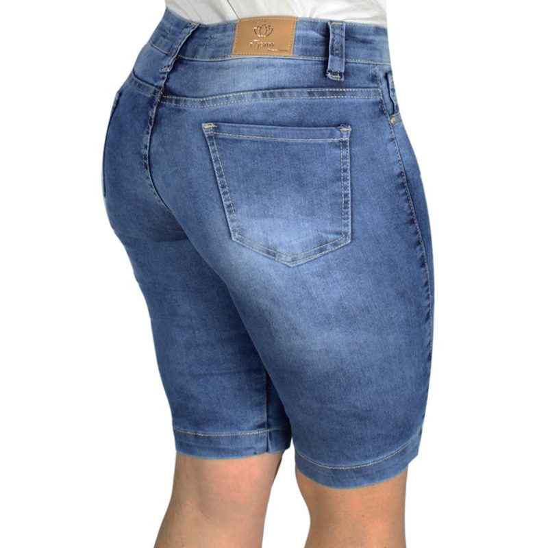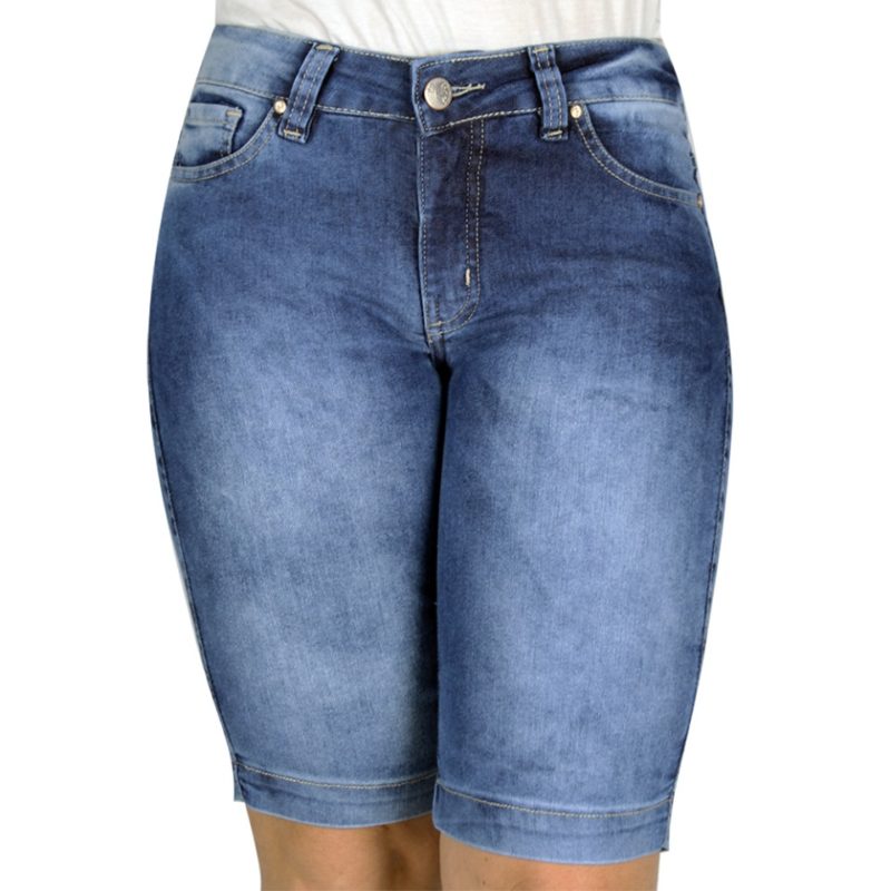 BERMUDA JEANS FEMININA MODELO CICLISTA COM CINTURA MÉDIA ALTA