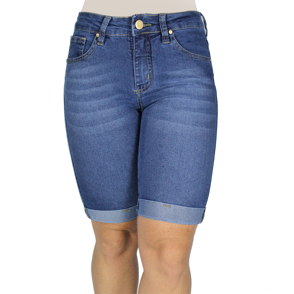 BERMUDA JEANS FEMININA MODELO CICLISTA CINTURA MÉDIA ALTA COM ELASTANO