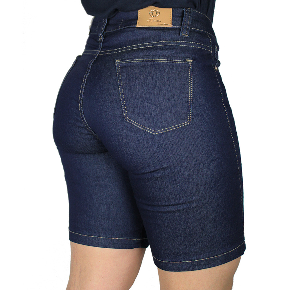 BERMUDA JEANS FEMININA COM ELASTANO MODELO CINTURA MÉDIA ALTA