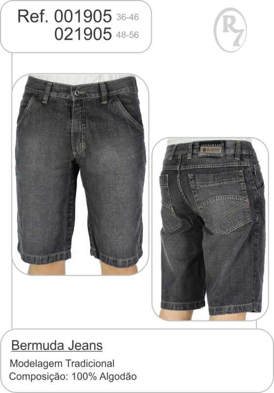 BERMUDA JEANS MASCULINA MODELO TRADICIONAL 100% ALGODÃO