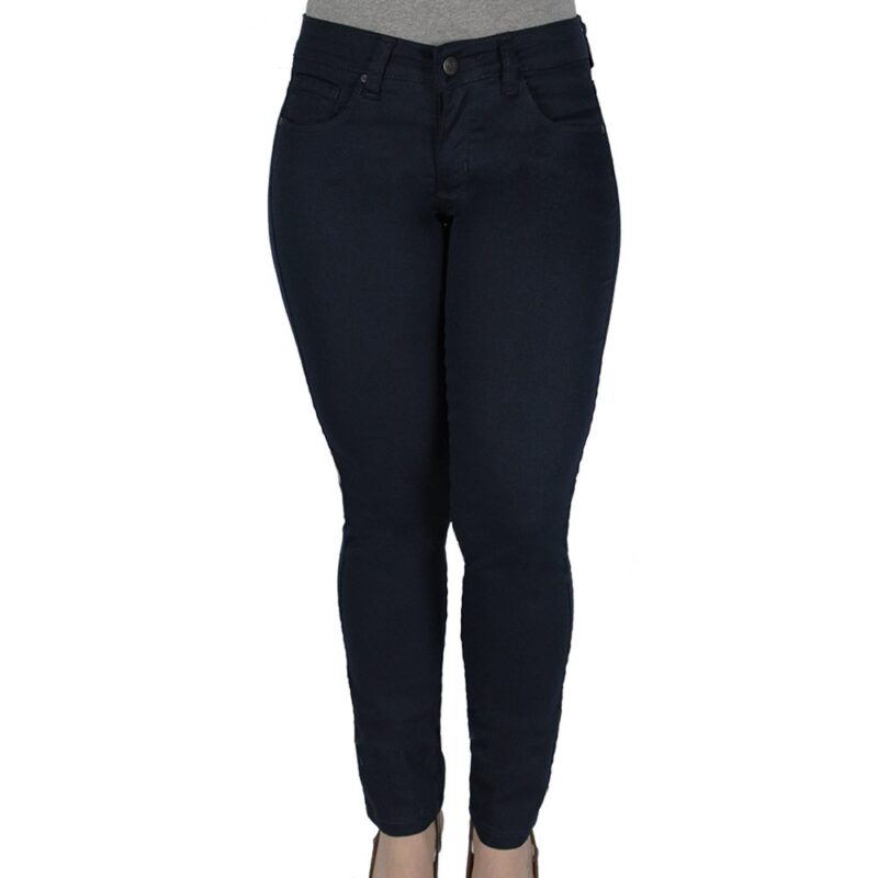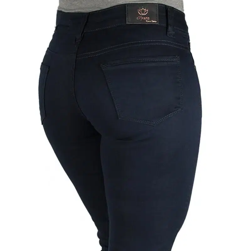 CALÇA DE SARJA FEMININA MODELO TRADICIONAL COM CINTURA MÉDIA ALTA