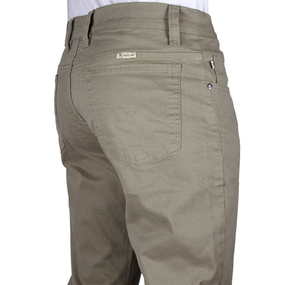 CALÇA MASCULINA DE SARJA TRADICIONAL COM CINTURA MÉDIA ALTA