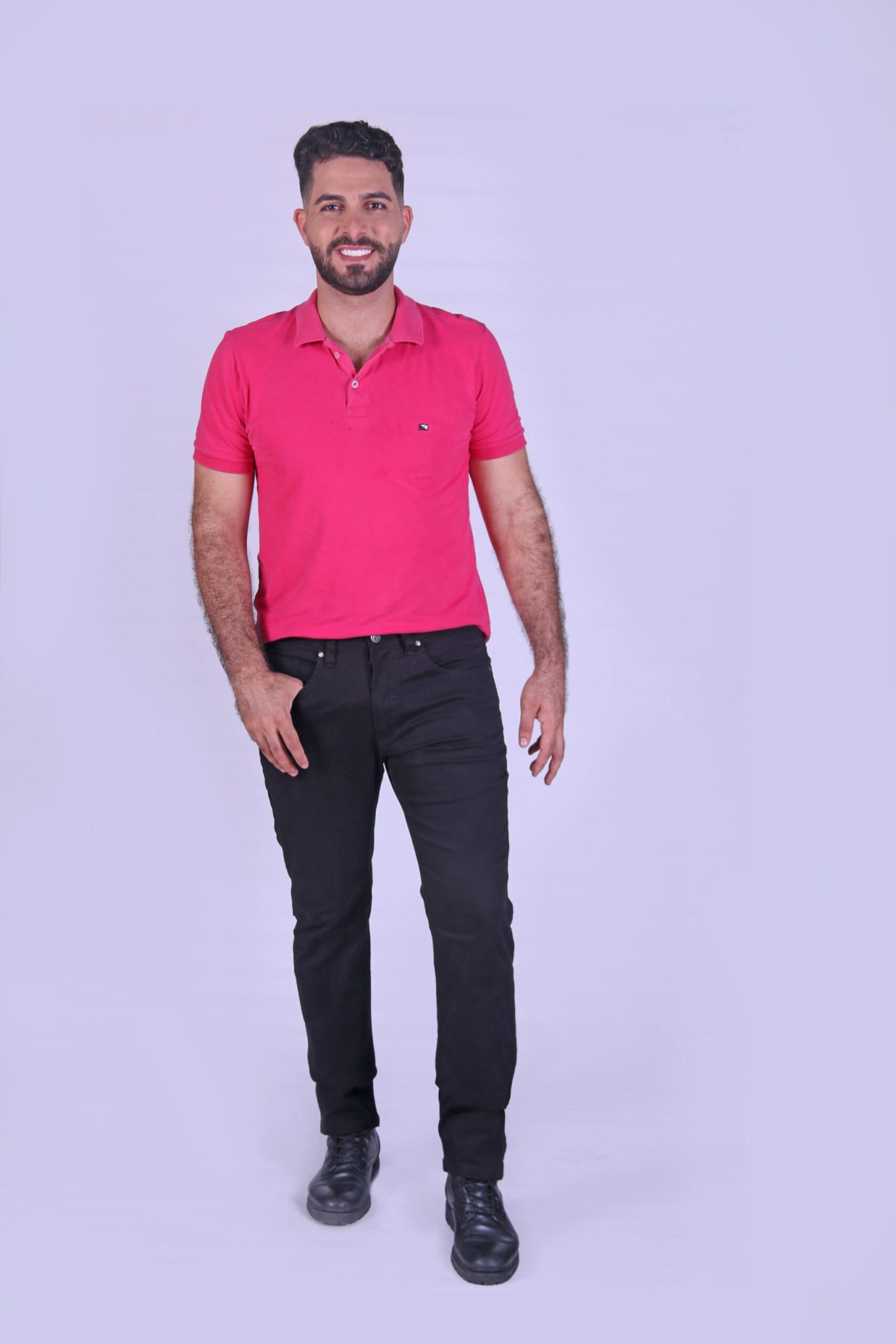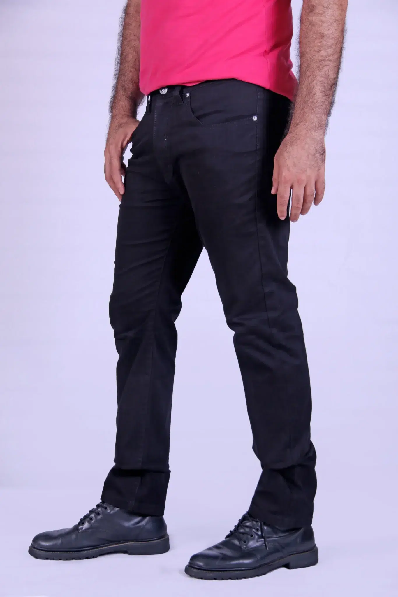 CALÇA MASCULINA DE SARJA TRADICIONAL COM CINTURA MÉDIA ALTA