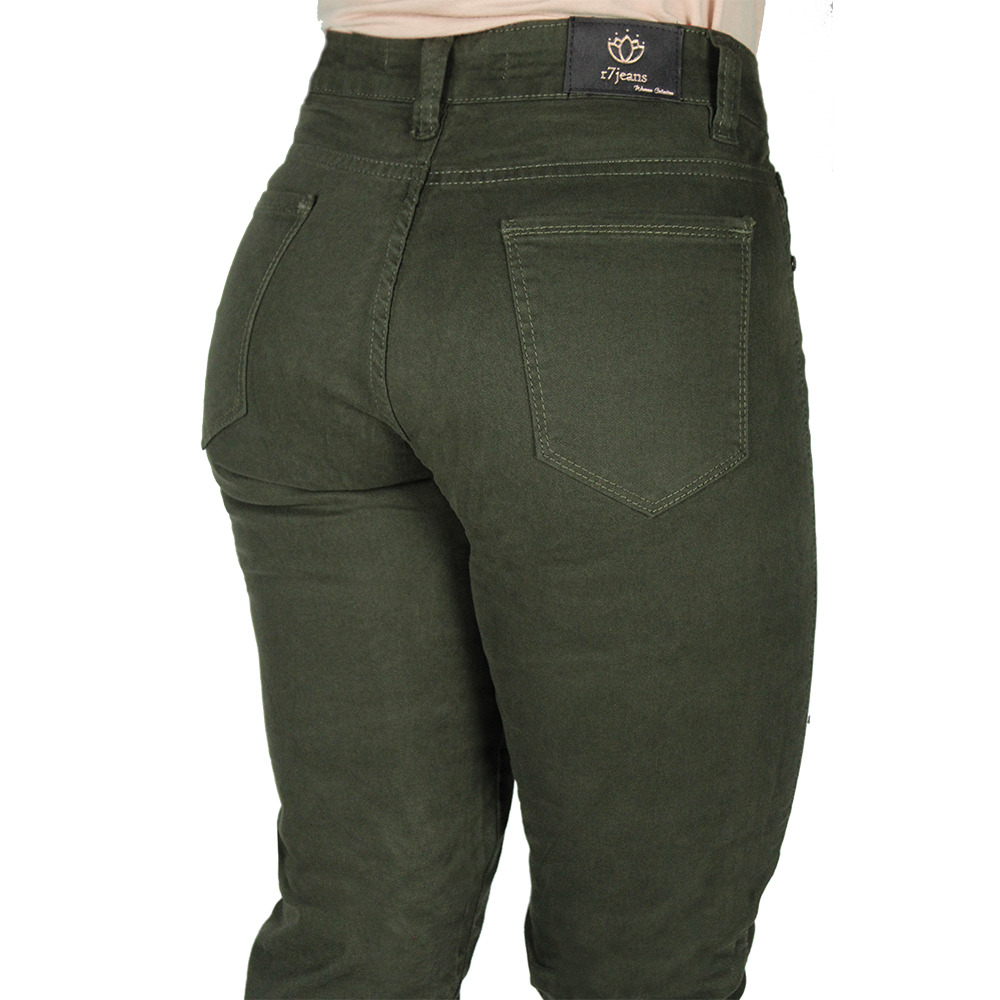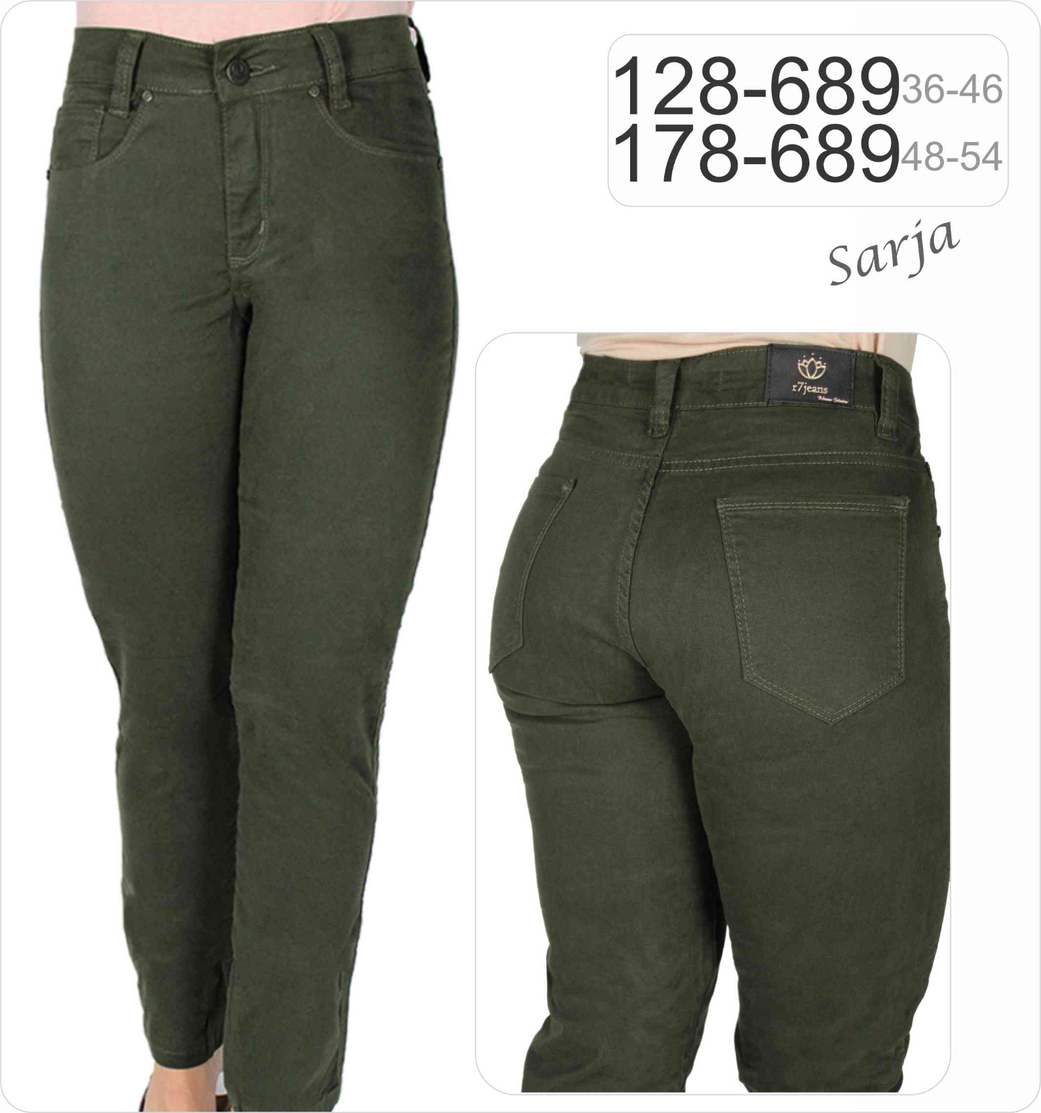 CALÇA DE SARJA FEMININA MODELO TRADICIONAL COM CINTURA MÉDIA ALTA