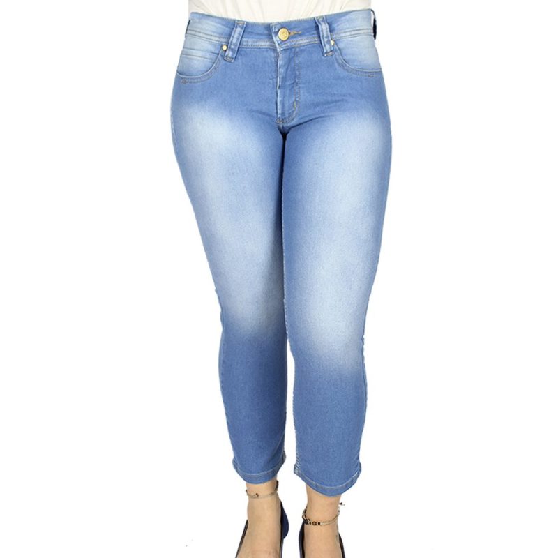 CALÇA JEANS FEMININA MODELO CROPPED COM CINTURA MÉDIA ALTA