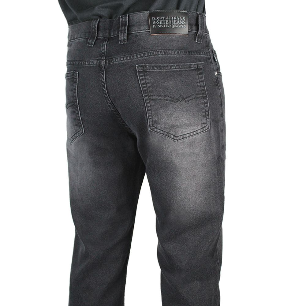 CALÇA MASCULINA EM JEANS COM CONSTRUÇÃO DE MALHARIA MODELO TRADICIONAL COM CINTURA MÉDIA ALTA