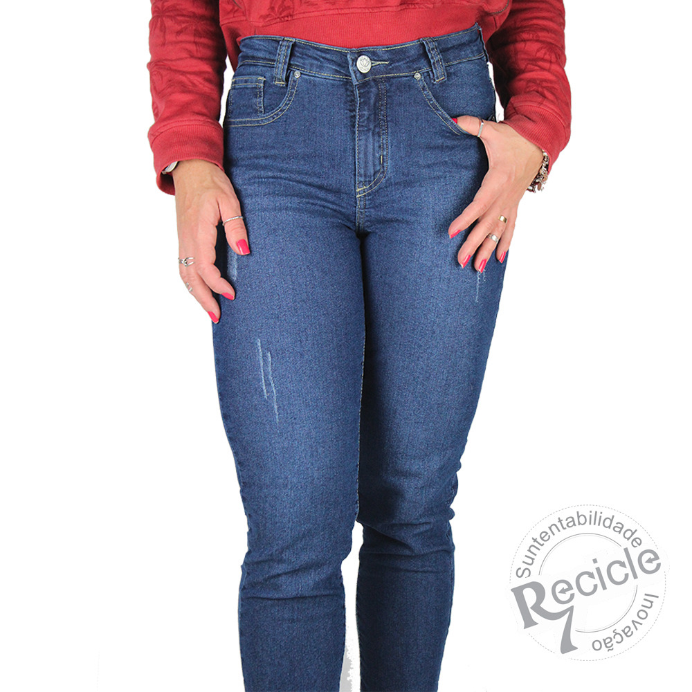 CALÇA JEANS FEMININA MODELO TRADICIONAL COM CINTURA MÉDIA ALTA