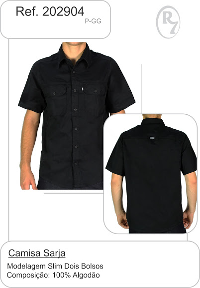 CAMISA MASCULINA DE SARJA MODELO SLIM MANGA CURTA
