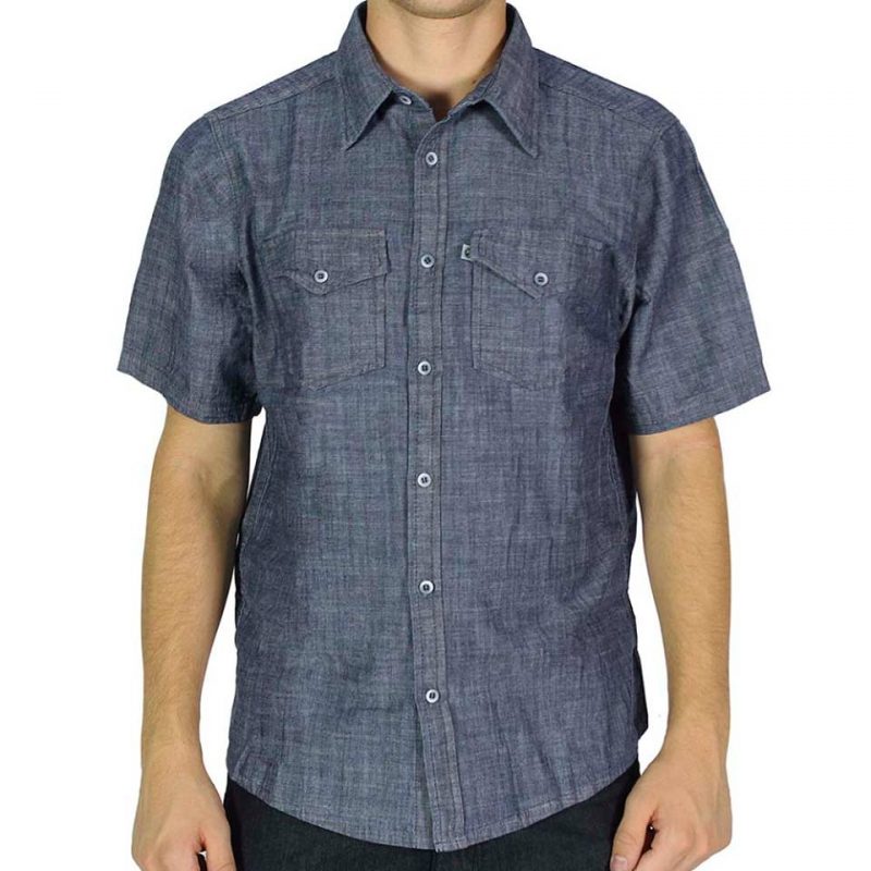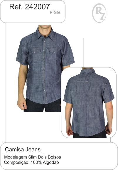 CAMISA JEANS MASCULINA 100% ALGODÃO MODELO SLIM MANGA CURTA