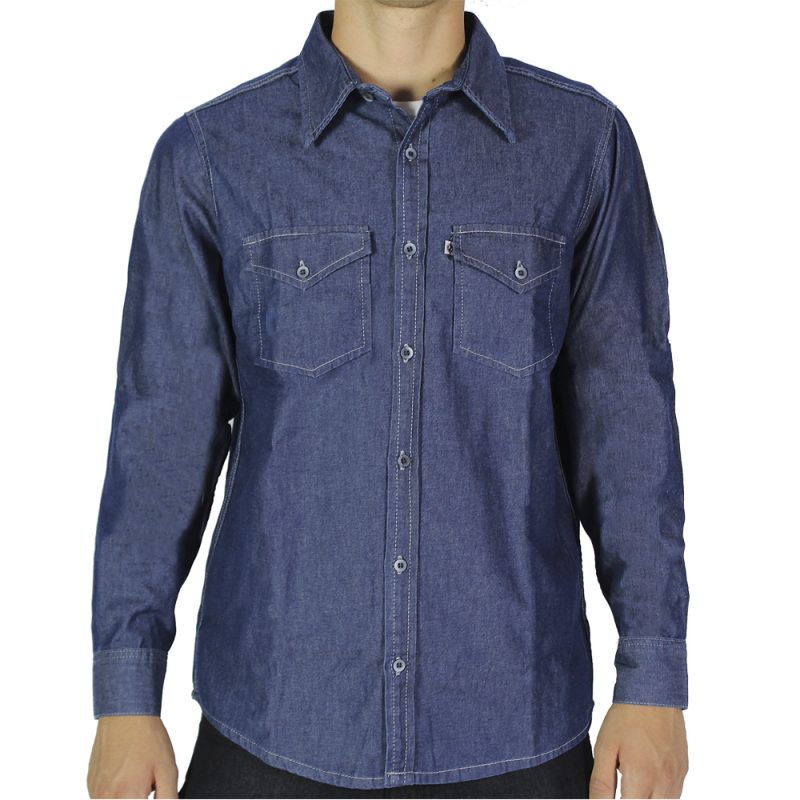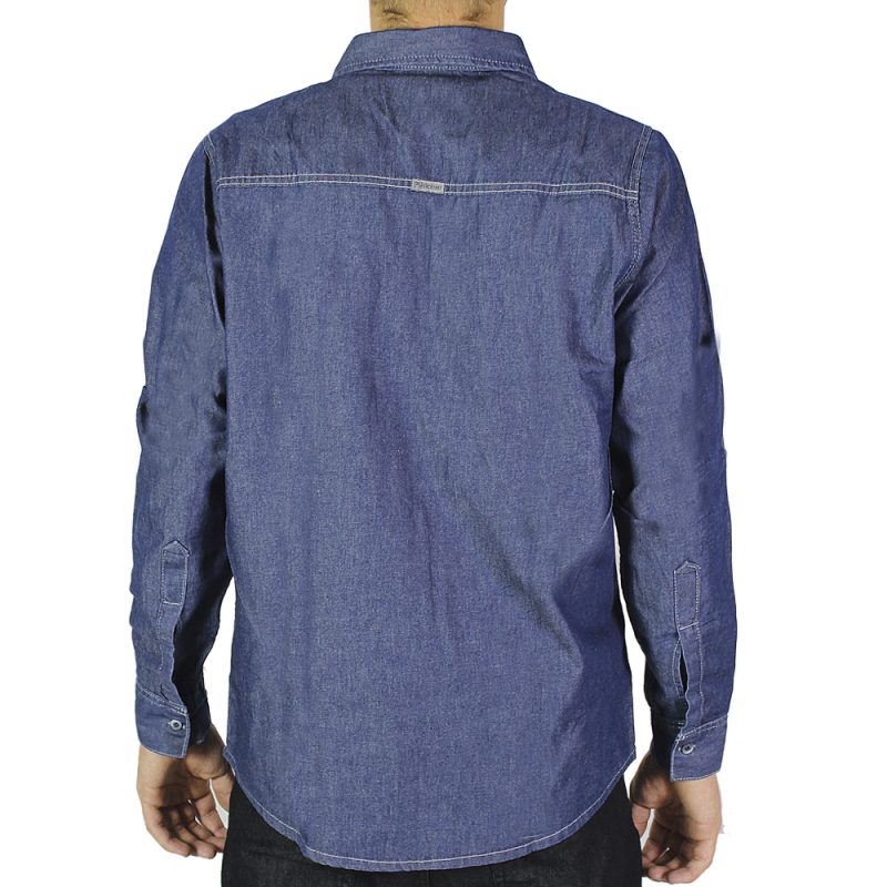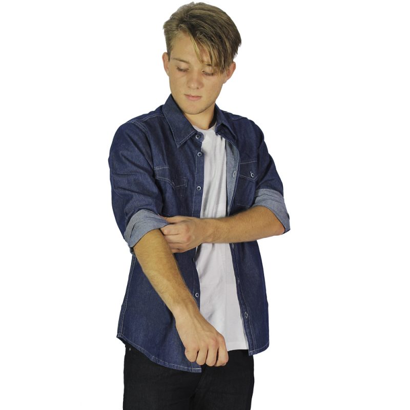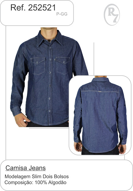 CAMISA JEANS MASCULINA MODELO SLIM MANGA LONGA 100% ALGODÃO