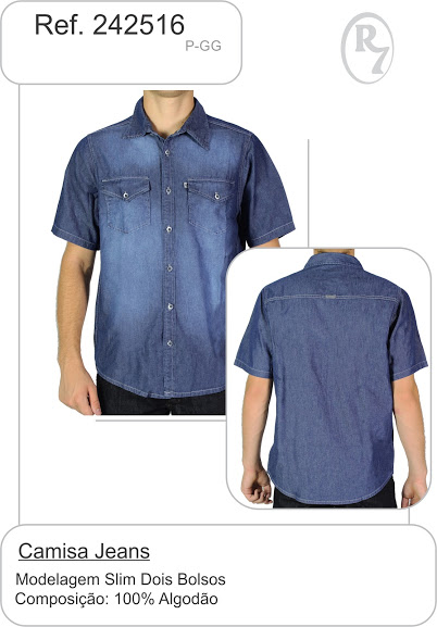 CAMISA JEANS MASCULINA 100% ALGODÃO MODELO SLIM MANGA CURTA